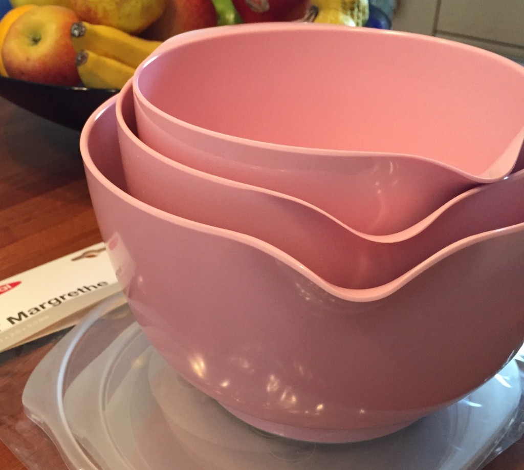 När jag blev uppsagd från mitt jobb för snart tre år sedan fick jag ett presentkort av mina arbetskamrater. Det har jag utnyttjat nu. Bättre sent än aldrig! Så himla svårt att välja något!! Det blev till slut tre rosa Margerethe-skålar med lock. Jag har läääänge känt att jag behöver fler men inte kommit till skott! Äntligen!! Det är så fint med rosa, eller hur??
