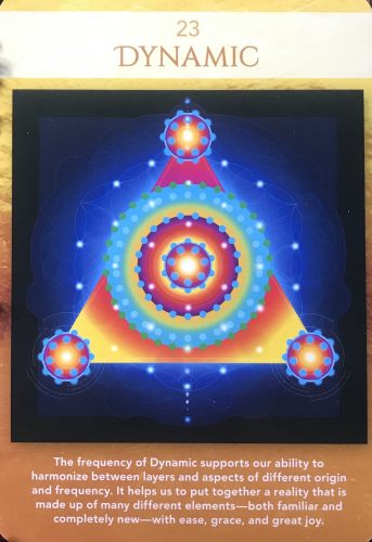Du skapar rörelse framåt samtidigt som du hämtar kraft från det som varit. Aktiveringen av denna dynamik handlar om att föra samman det oväntade. Det kan handla om allt från färger, ord, musik eller mat. Med dynamiken skapar du harmoni vart du än går. Du vet vad som hör samman. Du vet.