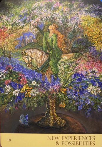Jag satte mig ner och öppnade upp asken. Där låg ett kort med budskapet “New experiences & possibilities”. Jag kände direkt att “Hmm detta är nog det budskap jag behöver idag. Läste det och kände “YES” helt rätt.