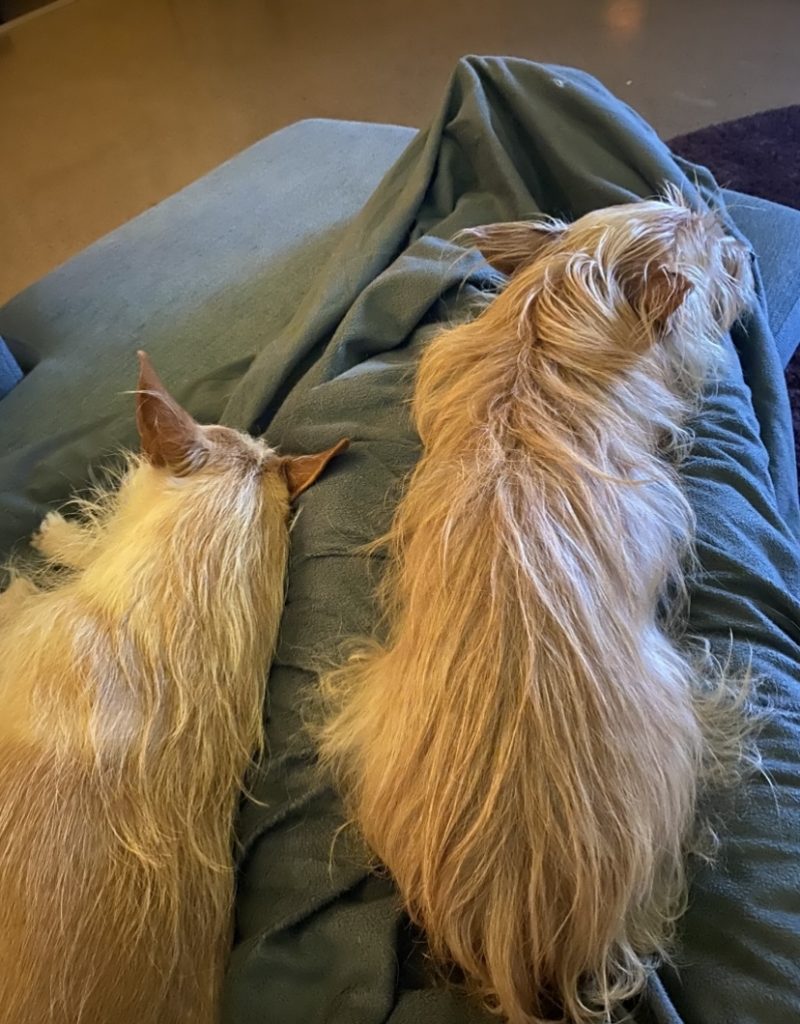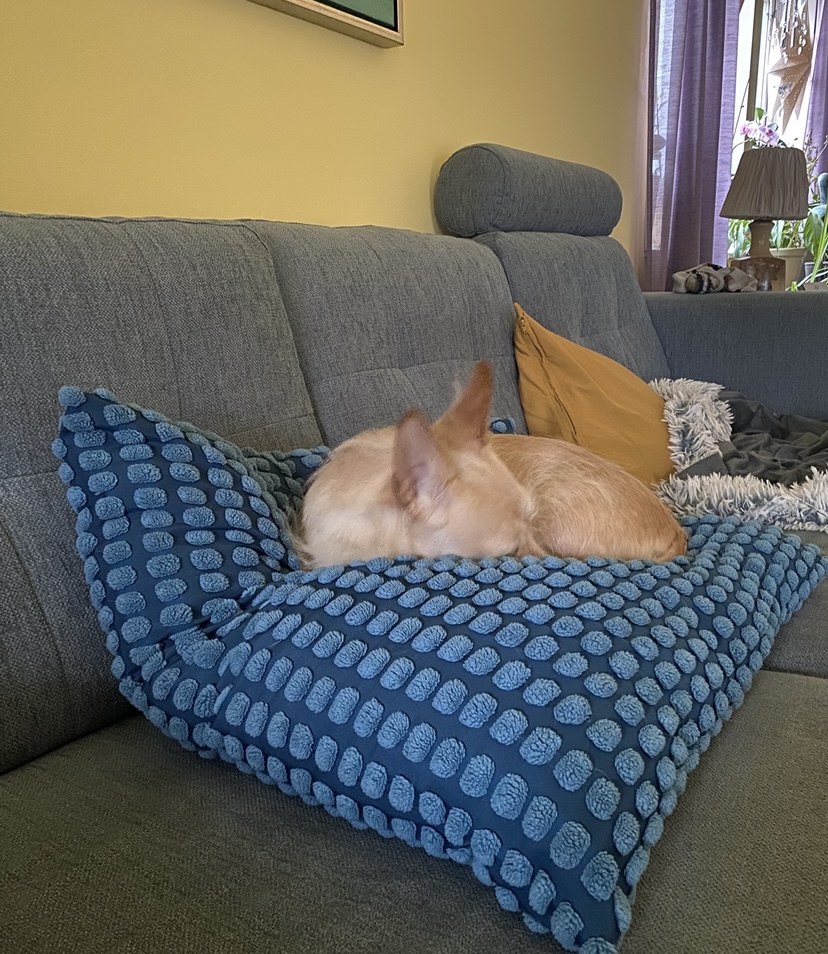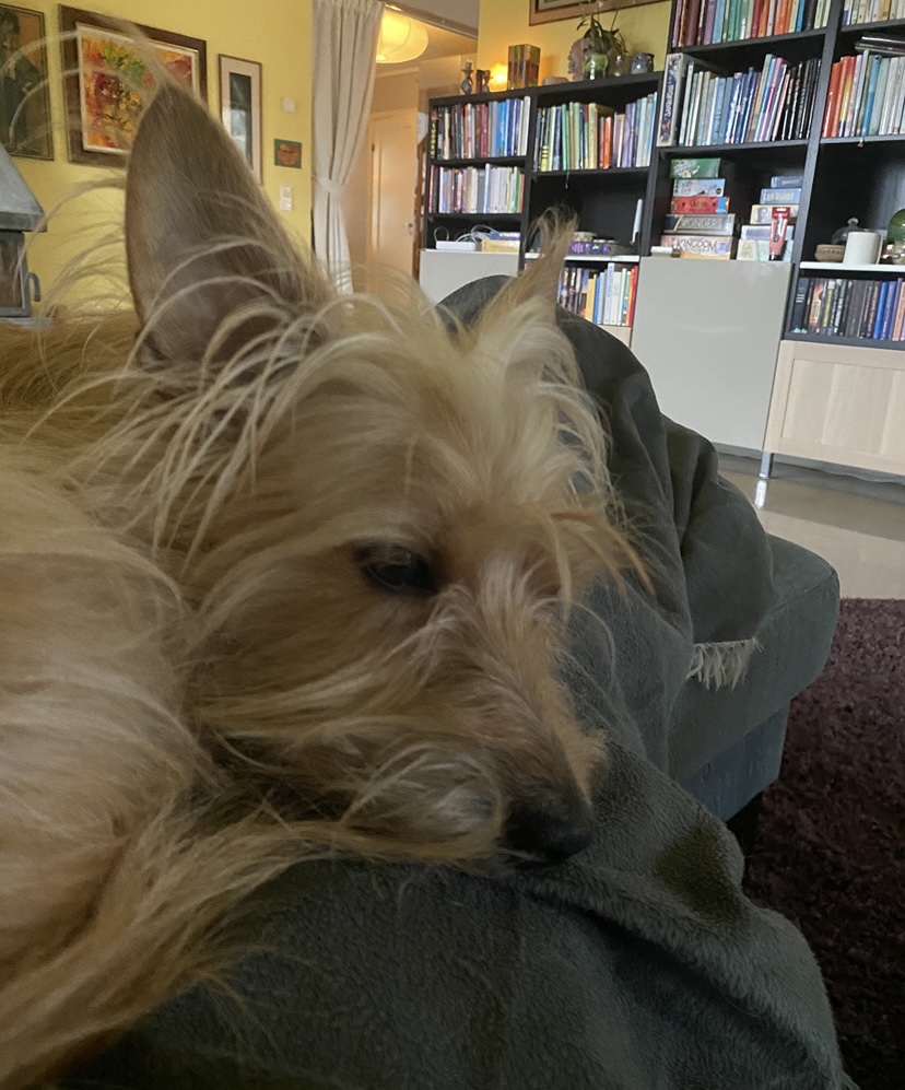 Sen har jag ju världens gulligaste distraktion här hemma. Det är så mysigt att sitta i soffan med en filt och hundarna som sällskap. Höra LilleB snarka.. Cliff när han sträcker på sig. Fast han är liten så kan han bli väldigt lång! 🙂